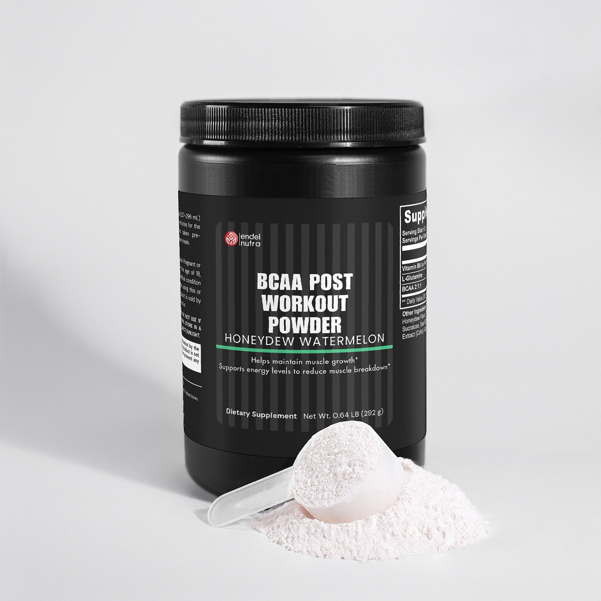 BCAA Post Workout Powder is a blend of 5000mg of branched-chain amino acids and Glutamine for lean muscle and recovery. It contains the ideal ratio of 2 parts Leucine to 1 part Isoleucine and Valine. These amino acids increase protein synthesis and nitrogen retention, both essential to building lean muscle.